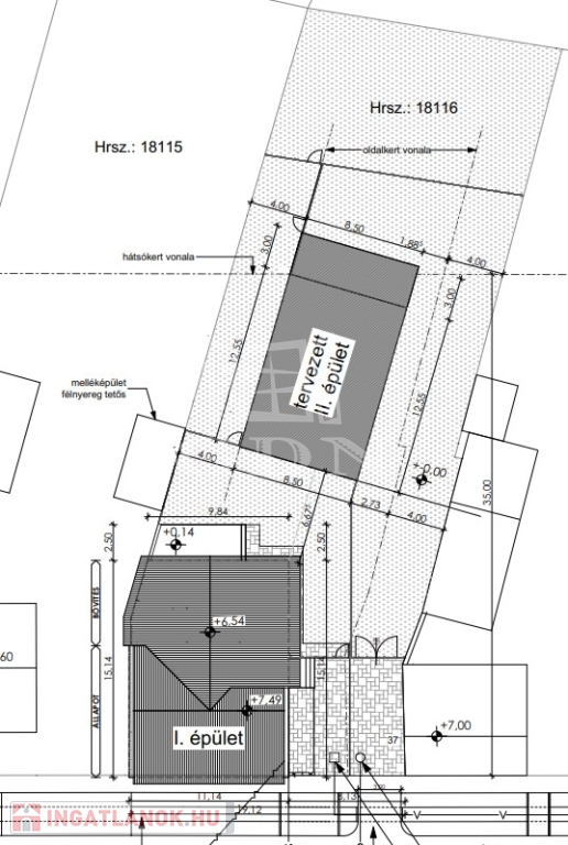 Az ingatlan egy összesen 1014 m²-es telken helyezkedik el, amely két különálló lakóegységre lett megosztva. A hirdetett ház az utcafronti épület, önálló, jól elszeparált, 504 m²-es telekrésszel.