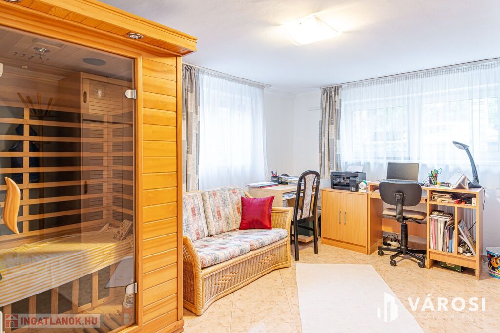 Az ingatlan két külön bejárattal rendelkezik. Az alsó szint (szoba, nappali, konyha, fürdő, mosókonyha, tároló) az udvar felől teljesen függetlenül is megközelíthető.