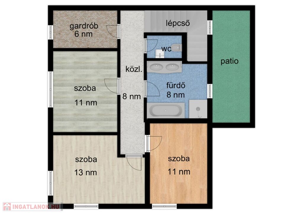 - 127 nm lakótér + 24 nm-es terasz, 8,7 nm patió.
