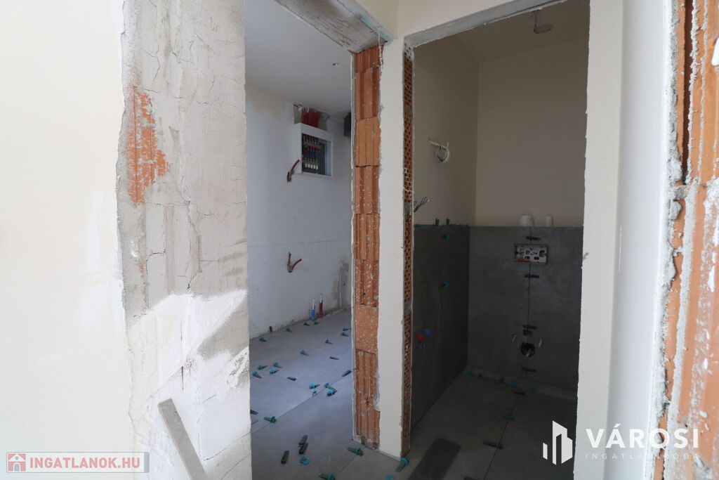 - Glettelt falak, villany alapszerelve, dugaljak, kapcsolók, lámpa testek helyei kialakítva.