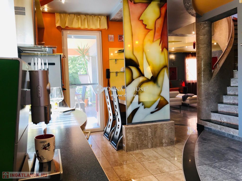 A ház helyiségeinek színvilága, burkolatai a mediterrán stílust képviselik, így együttesen egy nagyon kellemes, otthonos megjelenést sugároznak. A terek felosztása jól átgondolt, ennek köszönhetően nagyon kellemes atmoszférájú az ingatlan.