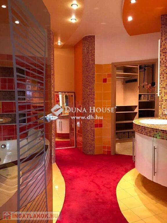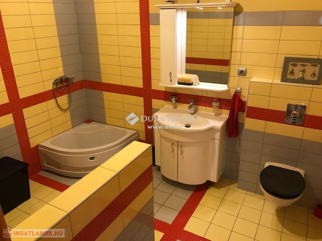 Az egyik fürdőszoba tágas, elegáns szaniterekkel és burkolatokkal felszerelt, sarokkádas, melyben még egy wc is található. A másik fürdőbe zuhanykabin került beépítésre.