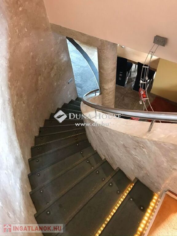 Az alsó szinten belépéskor kellemes belső tér fogad, az előszobából nyílnak a helyiségek. Balra a konyha-étkező, jobbra gardrób, fürdő, mellékhelyiség, mely kézmosóval felszerelt. Az előszobából tovább haladva a rendkívül hangulatos, jó fényviszonyokkal rendelkező tágas nappali tárul elénk, melynek dísze a kandalló. A nappali és a konyha-étkező egy teret alkotnak, mindössze egy oszlop választja el őket. A konyha gépesített, Bosch gépekkel felszerelt. A nappaliból kiléphetünk a fedett - és nyitott teraszra.