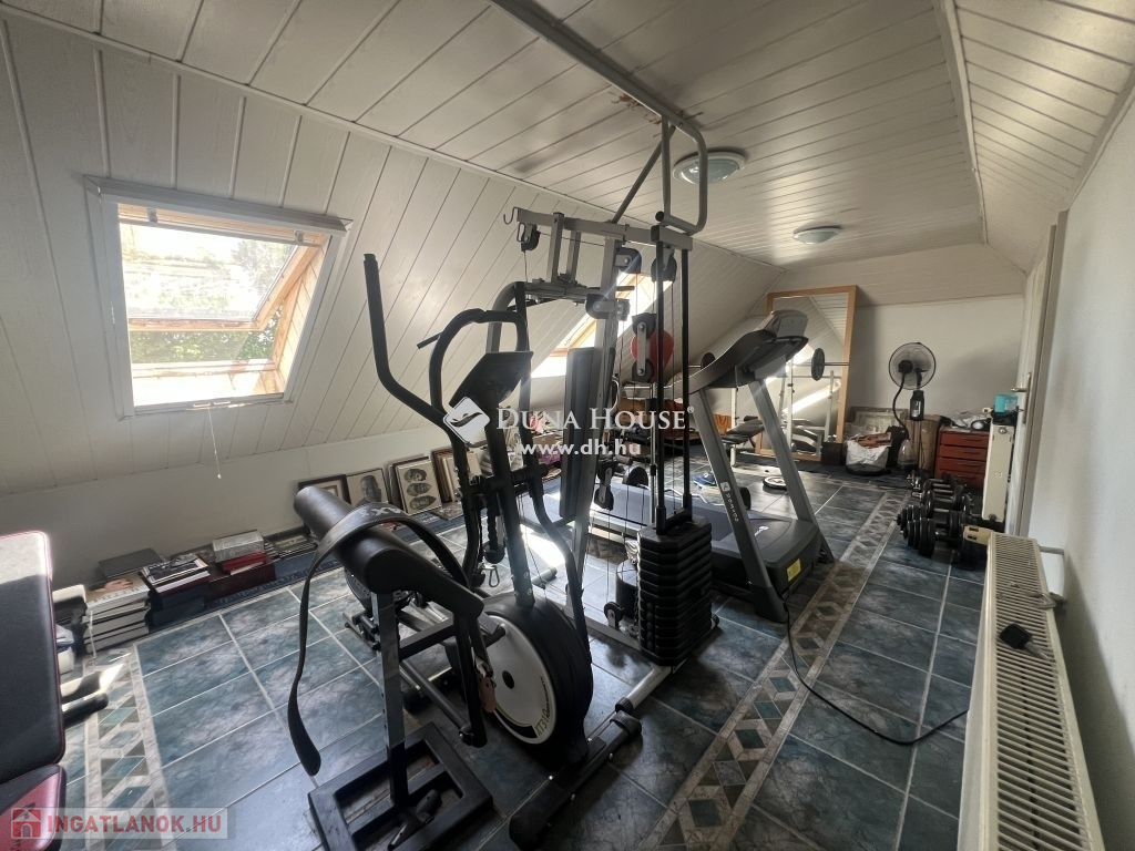 Wellness részleg a tetőtérben: szauna, edzőterem, szolárium és tároló