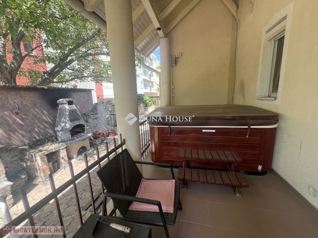 A dupla garázs mellett az utcán is ingyenes parkolási lehetőség áll rendelkezésre. Az udvaron jakuzzi, sütögető és bográcsozó kapott helyet, valamint egy fúrt kút is rendelkezésre áll az öntözéshez.