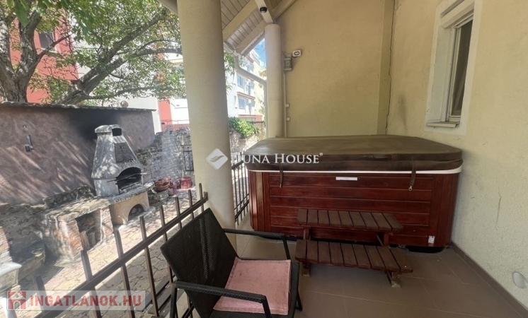A dupla garázs mellett ingyenes utcai parkolás, az udvaron jakuzzi, bográcsozó, sütögető és fúrt kút biztosítják a kikapcsolódást. A tetőtéri wellness részlegben edzőterem, szauna, szolárium és tároló kapott helyet – ritka extrák, amelyek ezt az ingatlant igazán különlegessé teszik.