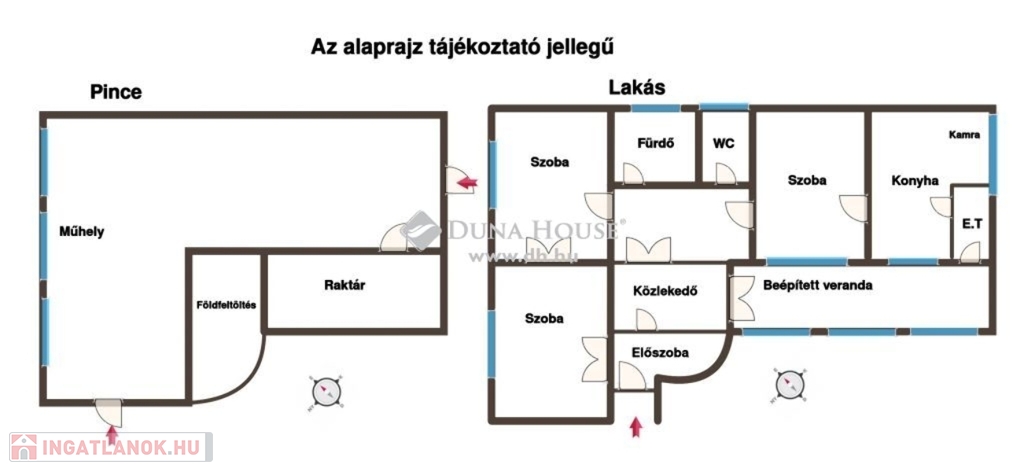 Az épületben, két szint található, a magasföldszint 163 m2, a pinceszint pedig 105 m2.