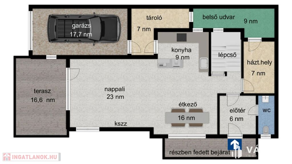 - 164 nm lakótér + 24 nm-es terasz, 8,7 nm patió.