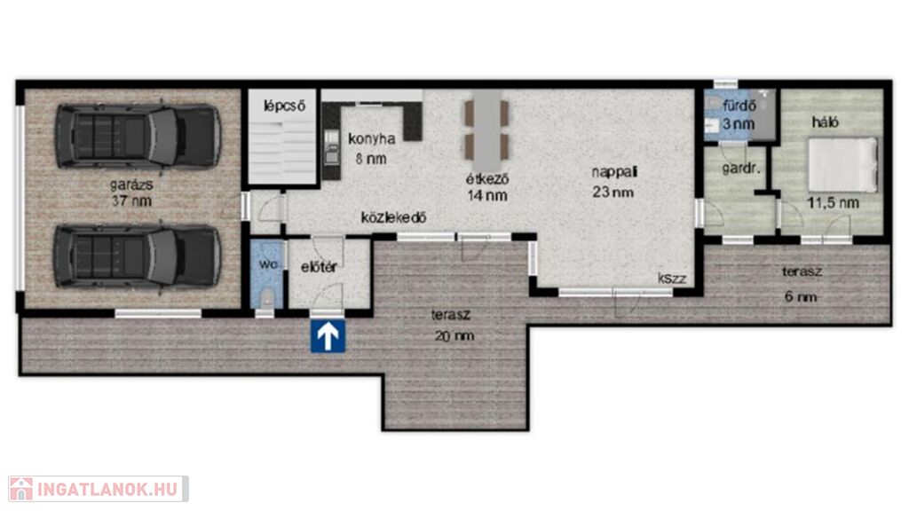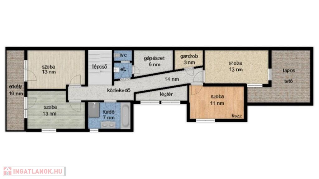 - Amerikai konyhás nappali+ 4 hálószoba+ 2 gardrób+ 2 fürdőszoba.