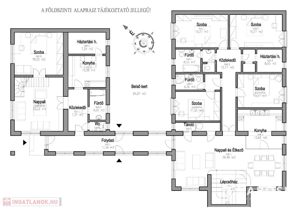 - Földszint: ~73,00 m2