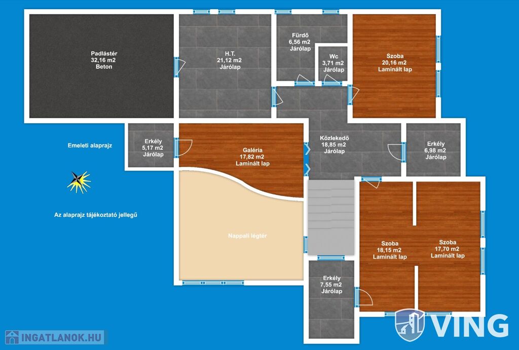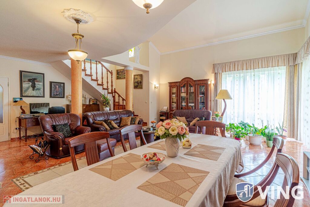 A ház 5 db hálószobával, 1 db " egy szemmel alig látható" 45 négyzetméteres nappalival, 2 db konyhával ,3 db fürdőszobával, 2 db külön Wc-vel,, és erkélyekkel, terasszal, valamint gardróbbal, és előtér közlekedőkkel, és háztartási helyiséggel (ezek mellett számtalan funkcióval) rendelkezik. A lakás központi része a nappali, ahonnan könnyedén kijutunk a hangulatos teraszon keresztül növények sokaságában pompázó kertbe. Az ingatlan elhelyezkedésre, minősége, kialakítása miatt rendkívül sokrétű a felhasználása - akár lakás, vagy befektetési célra -, amely maximálisan kiemeli ezt az ingatlant az átlagos házak sorából és egyedülálló választássá teszi azt.