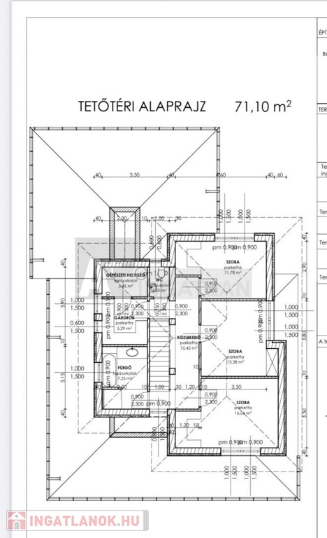 -emeletelrendezése : 3 hálószoba , fürdőszoba , wc és háztartási helyiség gardróbbal