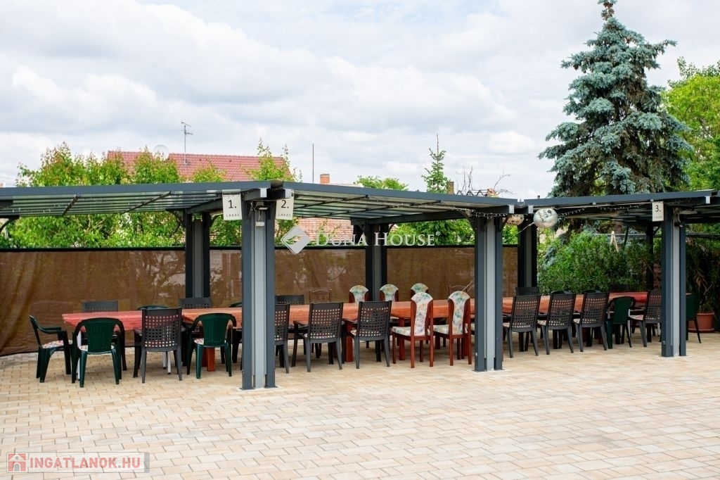 Az épület egy 923 m²-es, gondozott telken helyezkedik el, pár perc sétára az új sportuszodától és kézilabda csarnoktól kiváló lokáció akár saját otthonhoz, akár kiadásra vagy vendéglátásra.