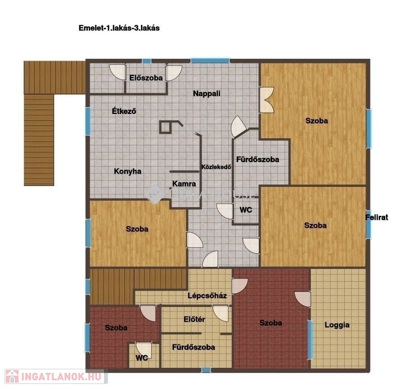 1. lakás (kétszintes, 105 m² + 14,5 m² terasz):