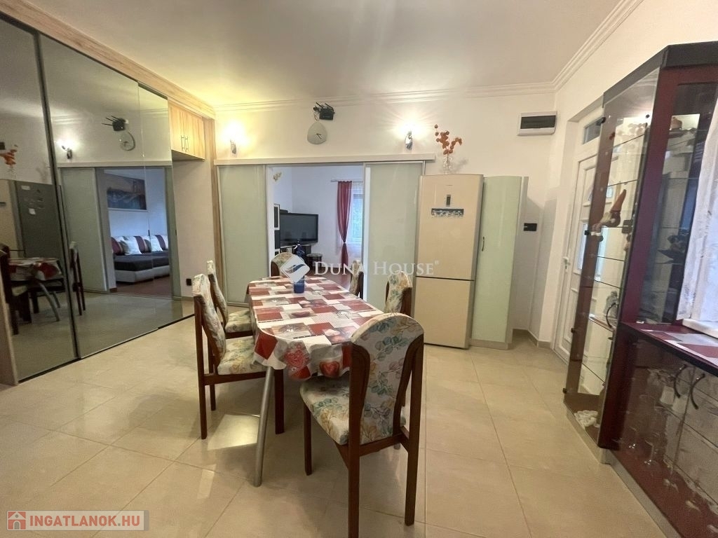 Eladó háromlakásos családi ház Szeged-Petőfi telepen kiváló lehetőség befektetésre, vállalkozásra vagy nagycsaládos otthonnak!Szeged egyik dinamikusan fejlődő, családbarát városrészében, a Petőfi telepen kínálunk eladásra egy igazán sokoldalúan hasznosítható családi házat. Az ingatlan három külön bejáratú, teljesen önálló lakással rendelkezik, így tökéletes választás lehet többgenerációs családoknak, baráti társaságoknak, befektetőknek vagy vállalkozóknak egyaránt.Az épület egy 923 m²-es, gondozott telken helyezkedik el, pár perc sétára az új sportuszodától és kézilabda csarnoktól kiváló lokáció akár saját otthonhoz, akár kiadásra vagy vendéglátásra.Az ingatlan főbb jellemzői:1981-ben épült, 1993-ban tetőtér-beépítéssel bővült3 külön bejáratú, önálló lakás jelenleg is működő szállásadás folyikMindhárom lakás klimatizált, saját konyhával, fürdőszobával és WC-vel rendelkezikNapelemek (2 lakás esetében), háromfázisú áramellátás, TV- és internet-hálózat kiépítveLakások részletesen: 1. lakás (kétszintes, 105 m² + 14,5 m² terasz):Tágas nappali, étkezős konyha, kamra, hálószoba, fürdő és WC a földszinten; az emeleten további szoba, fürdő és WC. Fűtés: modern kondenzációs kazán, padlófűtés és radiátorok. Melegvíz: napelem, éjszakai áram, vagy gázkazán. 2. lakás (69,5 m²):2018-ban teljes körűen felújított, három szobával, előszobával, konyhával, kamrával, fürdővel és WC-vel. Padlófűtéses, teljes burkolata hidegburkolat. Akadálymentesített ideális időseknek, kisgyermekes családoknak. 3. lakás (tetőtéri, 93,74 m², ebből 80,59 m² hasznos):Három szoba, konyha-étkező, kamra, fürdő, WC és szélfogó. Fűtés: padlófűtés, melegvíz: kondenzációs kazán + külön vízmelegítő a konyhához.További extrák:100 m²-es melléképület a hátsó udvarban:2 garázs (egy elektromos kapuval)Nyári szoba klímávalZuhanyzó, külön WCTeljes felszereltségű nyári konyha + kamraKisállattartásra kialakított részekTéliesíthető 16 m²-es kerti kiülő, bográcsozó és sütögető5 esővízgyűjtő tartály (kb. 1000 liter kapacitással)Parkolás:2 beálló garázsban4 beálló fedett gépkocsitárolóbanElektromos főkapu távirányítóvalKiváló infrastruktúra, ideális elhelyezkedés:A közelben minden megtalálható: orvosi rendelő, gyógyszertár, iskola, óvoda, bolt, valamint kiváló tömegközlekedési lehetőségek 10 percen belül 5 busz- és 1 trolijárat is elérhető.Amit az ár tartalmaz:Az ingatlan teljes bútorzattal beépített és különálló bútorokkal , valamint teljes műszaki felszereltséggel (TV-k, mosógépek, hűtők, mosogatógépek stb.) együtt eladó. Akár azonnal beköltözhető, vagy zavartalanul folytatható a vendéglátó tevékenység.Ez az ingatlan ideális választás:Többgenerációs együttélésreVállalkozás vagy vendéglátás indításáraStabil, hosszú távú befektetéskéntNe hagyja ki ezt a sokoldalú, kiváló állapotú ingatlant Szeged egyik legígéretesebben fejlődő városrészében!