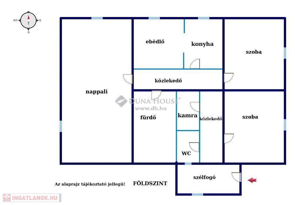 - szobák szalagparketta és laminált lapos burkolattal, a többi helyiségben járólap