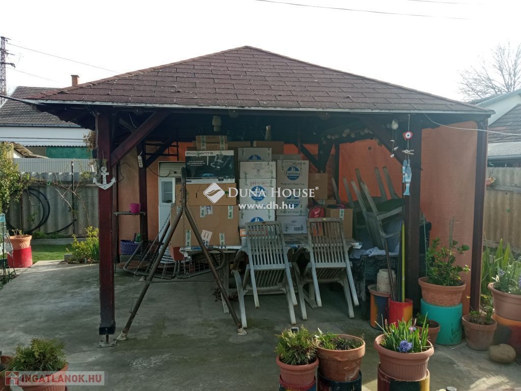 - az udvar egy része betonozott, van egy nagy kerti kiülő, előtte egy kerti sütő