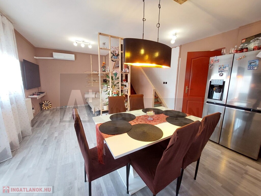- kétszintes, földszintjén amerikai konyhás nappali, fürdő, wc, előszoba, emeletén három hálószoba, fürdőszoba, közlekedő
