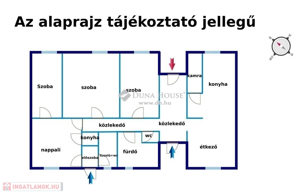 Az ingatlan elrendezése kétgenerációs otthonnak is ideális, mivel két külön bejáratú részre van osztva: