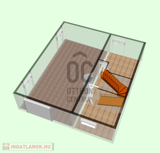 -két szintes lakótér, szintenként nettó:80m2, alatta garázs, kazánház és zöldségtároló található nettó:80m2