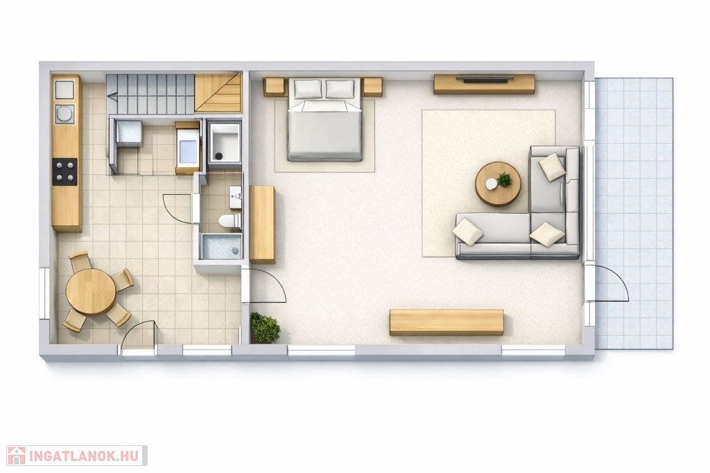 - 40 m² kis ház, pincével, 17 m²-es terasszal