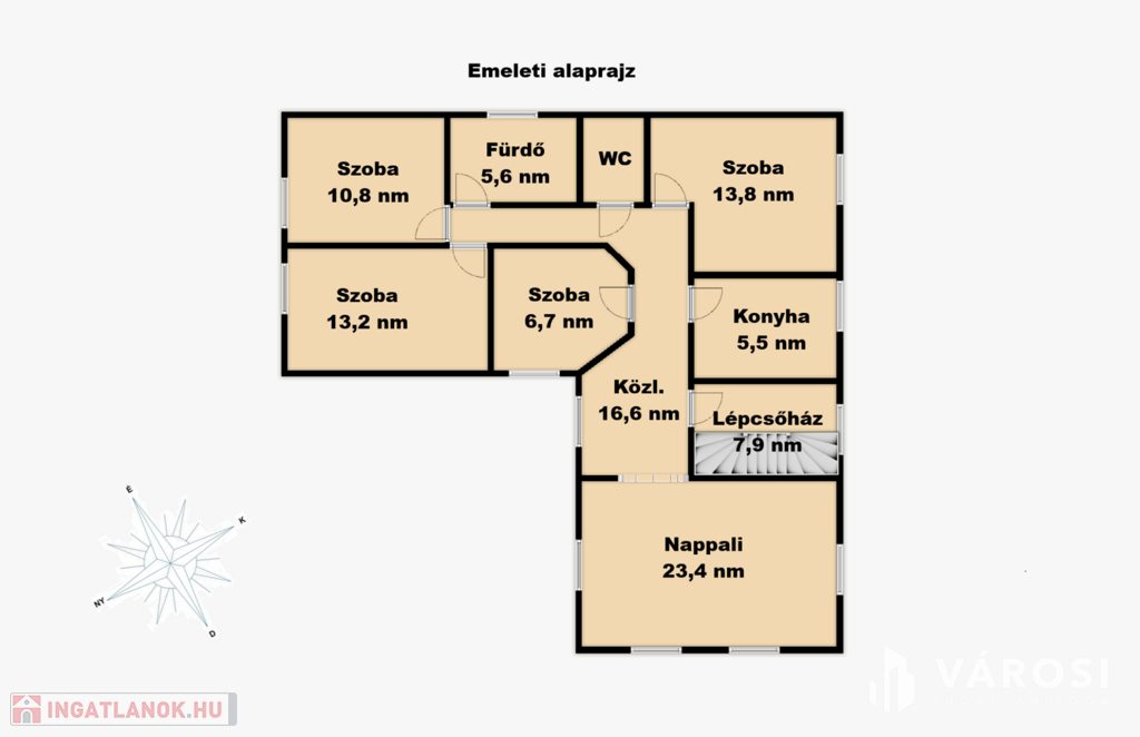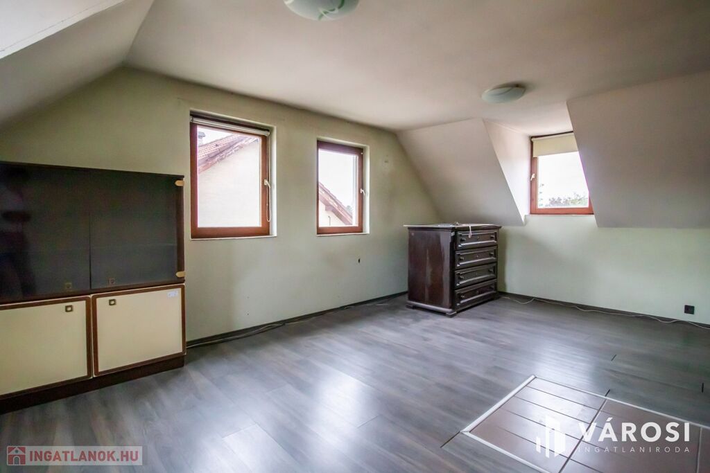 A tágas tetőtérben, további nappali, 3 napfényes szoba, 1 félszoba, konyha, fürdőszoba, wc helyezkedik el, 103 négyzetméteren.