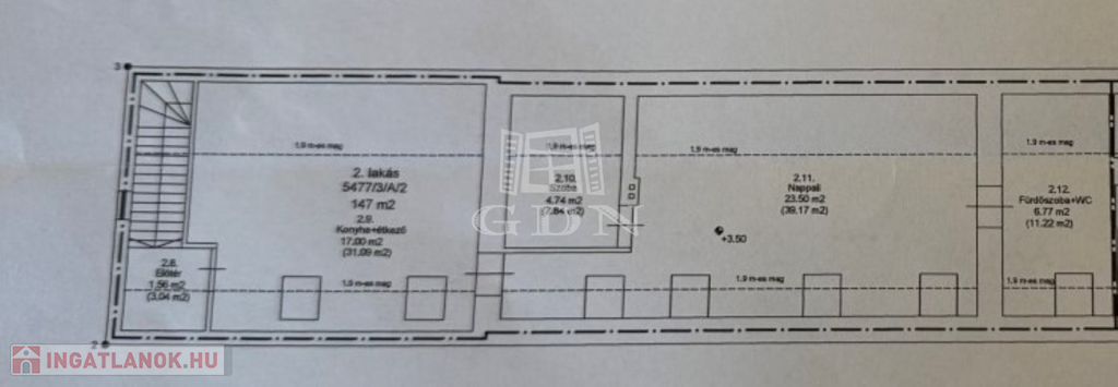 A most eladásra kínált belső lakás hasznos alapterülete összesen 147 m², és két különálló, de akár egybenyitható lakrészt tartalmaz: