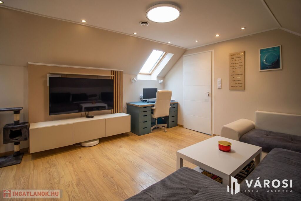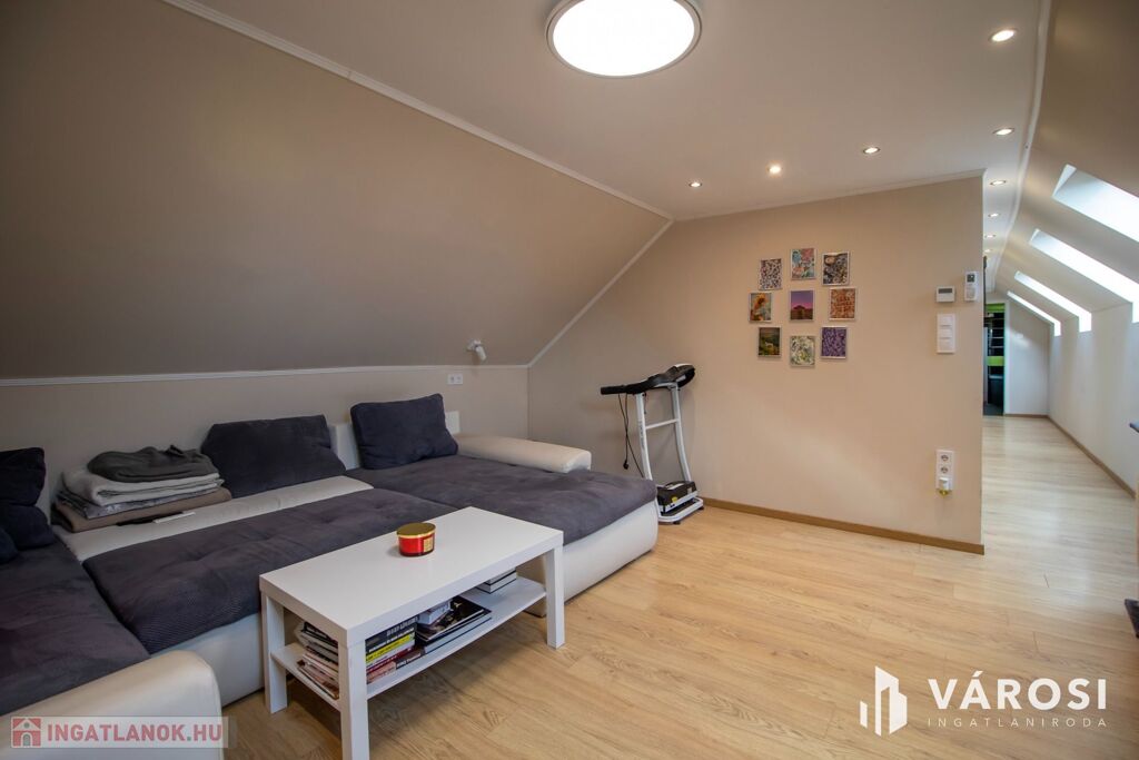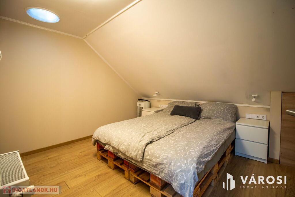 A székesfehérvári legjobb helyén a Pláza közelében eladó ez a 2005-ben épült, egyedi stílusú, hangulatos, 2 szintes házrész, 246 négyzetméteres kertrésszel. A két szint jelenleg két különálló lakásként funkcionál, de összenyitható ismét. A földszinti lakrész 93,5 az emeleti lakás pedig nettó 53,5 négyzetméter (bruttó 93,5 nm) Ezen kívül az udvaron található még egy 30 négyzetméteres fedett kerti kiülő, ami ideális helyszíne lehet családi vagy baráti összejöveteleknek. A társasházban összesen két lakás van. Többgenerációs családoknak vagy összeköltözőknek ideális.