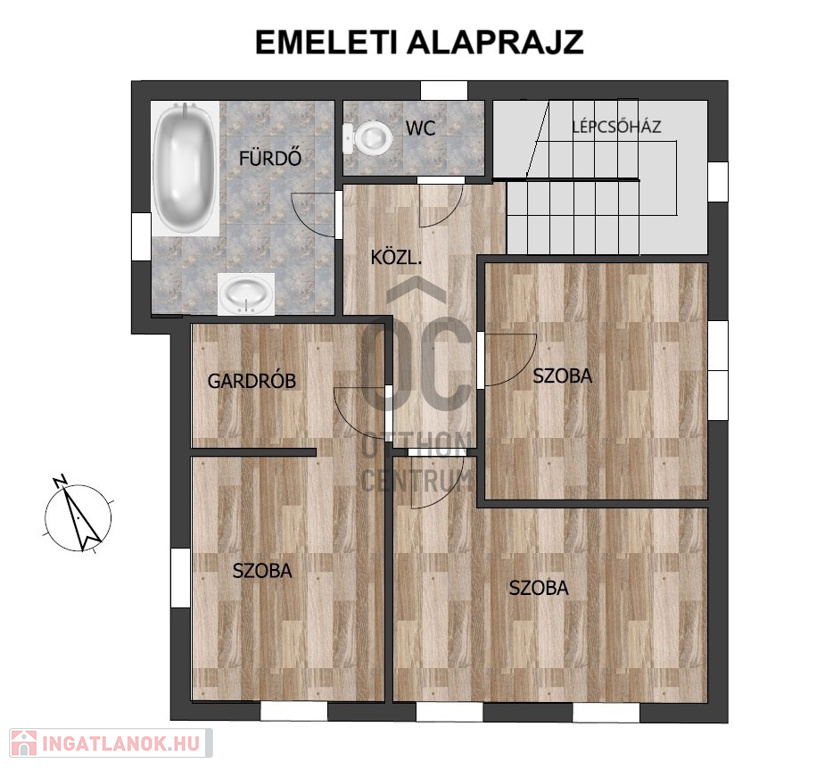 A modern épületek antracit és tört fehér színű megjelenéséhez praktikus belső elosztás tartozik: földszinten közlekedőből nyíló fürdőszoba-WC, egy légterű nappali-konyha-étkező, terasz, egy gardróbos hálószoba, lépcső alatti tároló, háztartási helység,az emeleten három hálószoba, egy fürdőszoba, és egy külön WC kerül kialakításra.