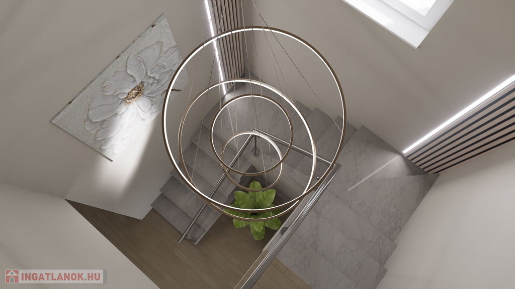 Székesfehérváron, az Öreghegyen eladó egy 2025/26-ban épülő, kétszintes, 163 m2-es modern családi ház. A ház földszintje nappali + 1 szobás kialakítású, étkező-konyhával, tárolóval, vendég WC-vel és előszobával. A szobához kapcsolódik egy gardrób szoba és egy privát fürdőszoba is. A nappalihoz egy terasz kapcsolódik. Az emeleti részen három szoba, fürdőszoba, előtér és külön WC található. Itt a két szobához szintén terasz kapcsolódik. A parkolásról egy 19,8 m2-es garázs és egy kültéri beálló is gondoskodik.