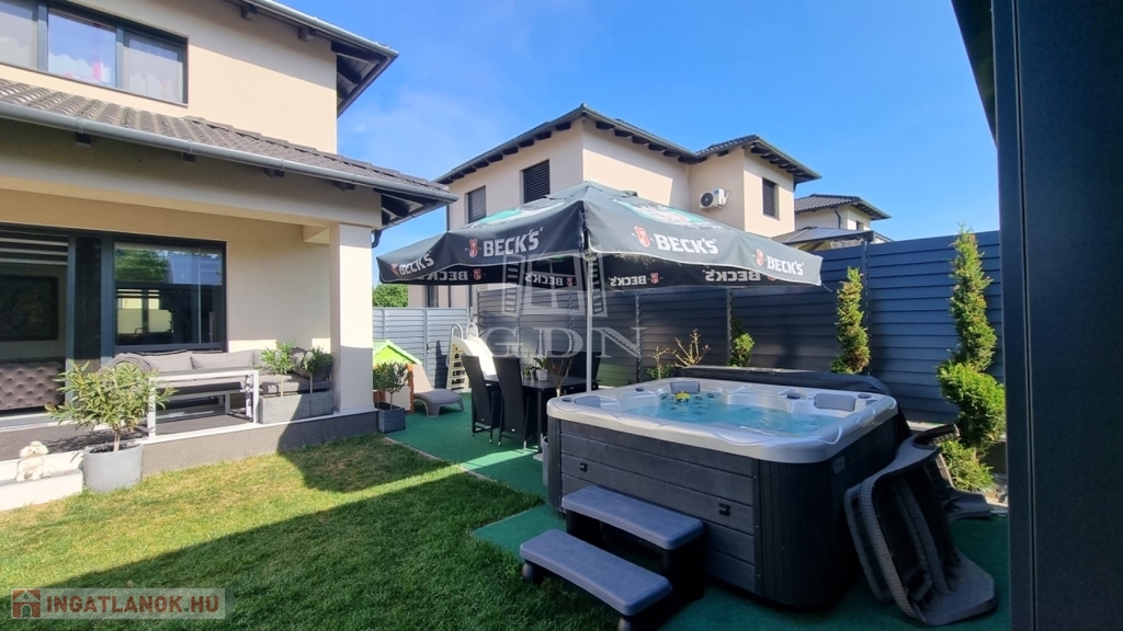 Energiahatékony ingatlan, saját 480m2 telekterület, kerti szaunaház, jakuzzi.