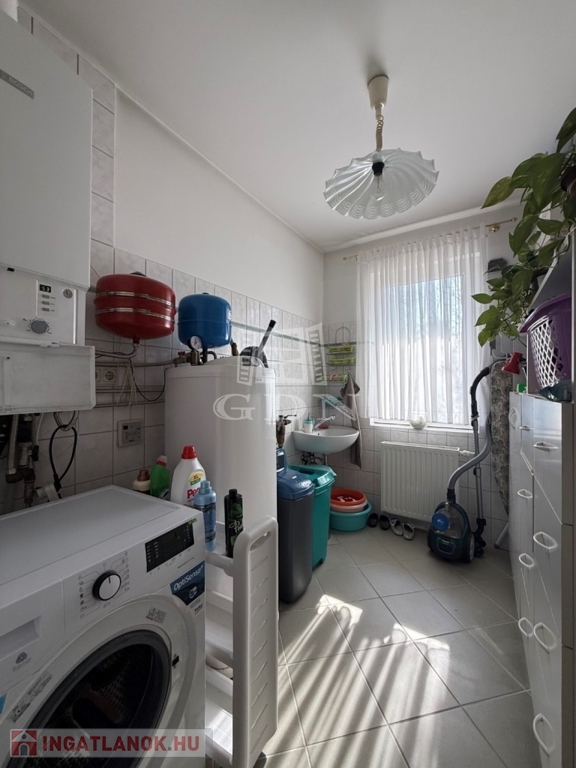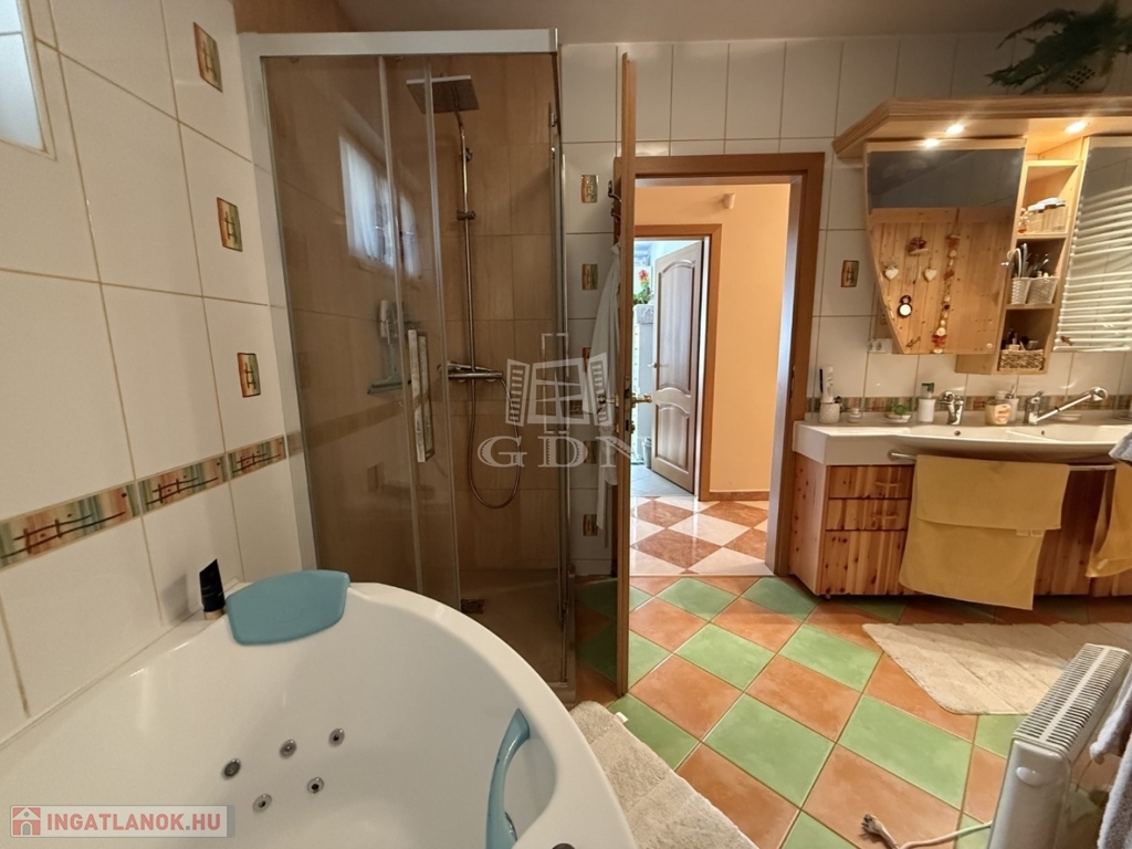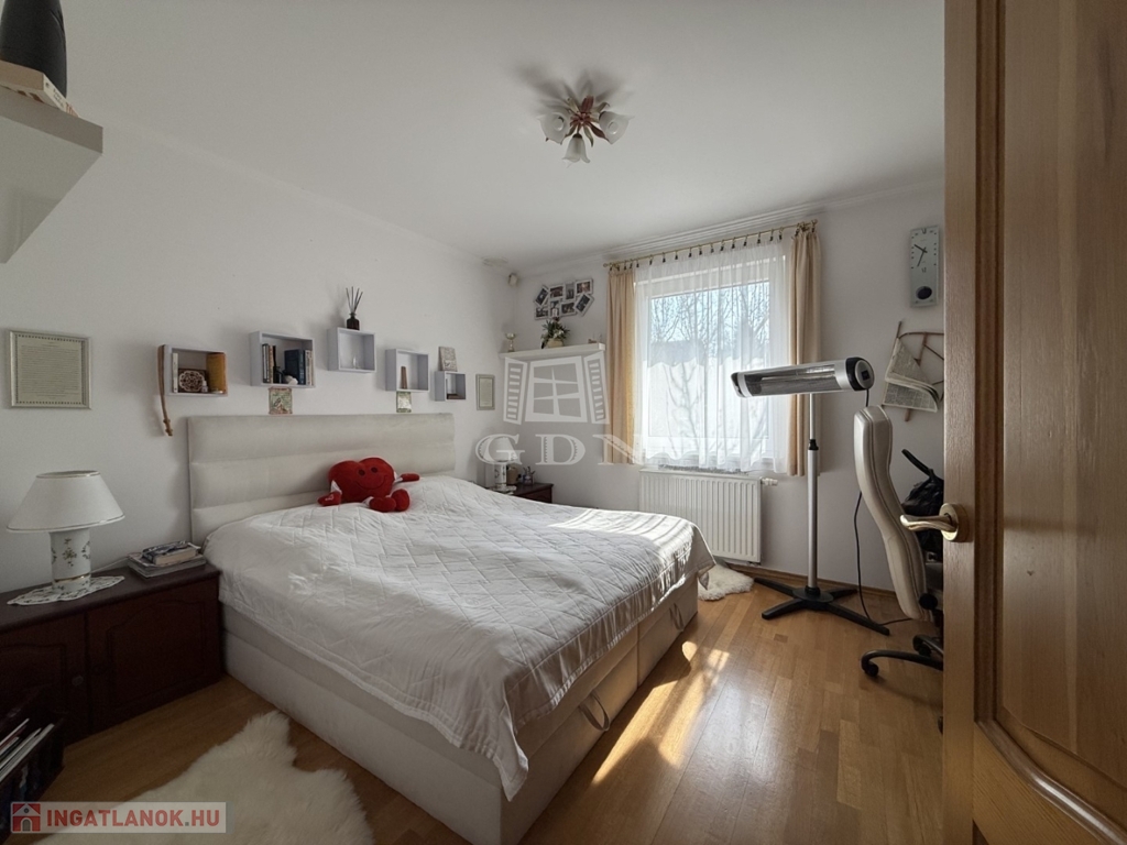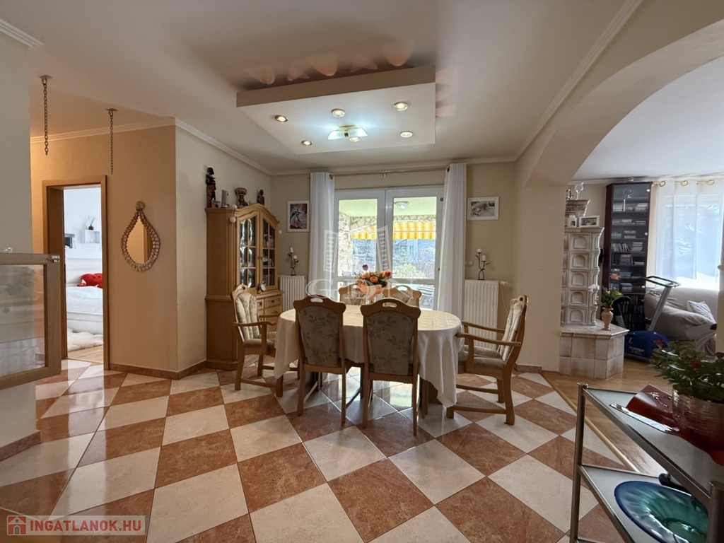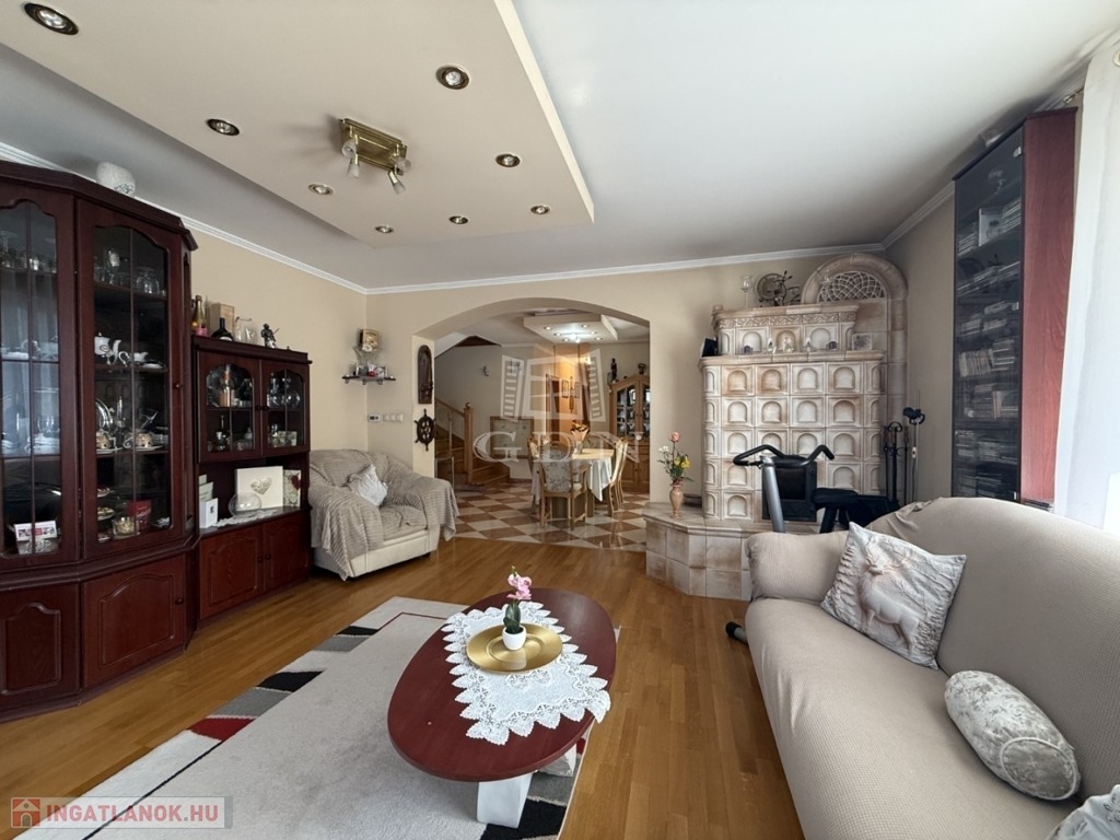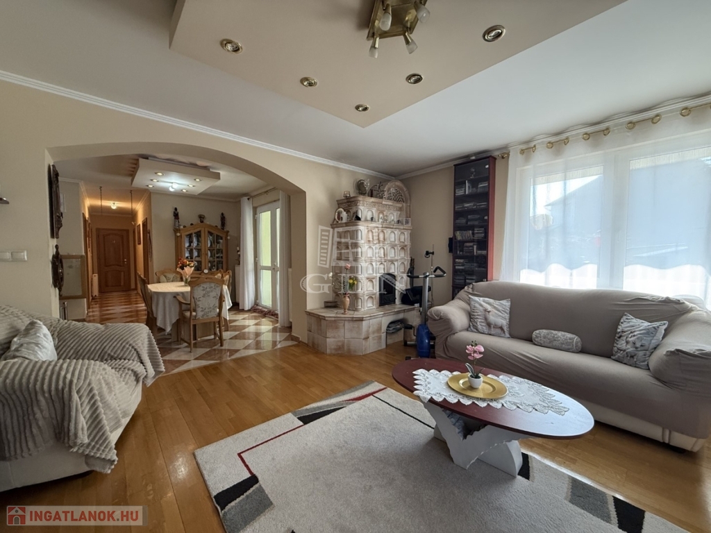 Az 803 m2-es önálló összközműves telken elhelyezkedő ingatlan 2004-ben épült, Porotherm téglából. Fűtése gázkazán radiátoros hőleadással. Nagy teljesítményű klímarendszerrel. Másodlagos fűtésnek a nappali közepén egy impozáns méretű cserépkályha található. Vastag falaknak köszönhetően a rezsiköltsége alacsony. A burkolatok magas minőségű kő és laminált padlóburkolat, mely az egész házat egyedivé teszi.