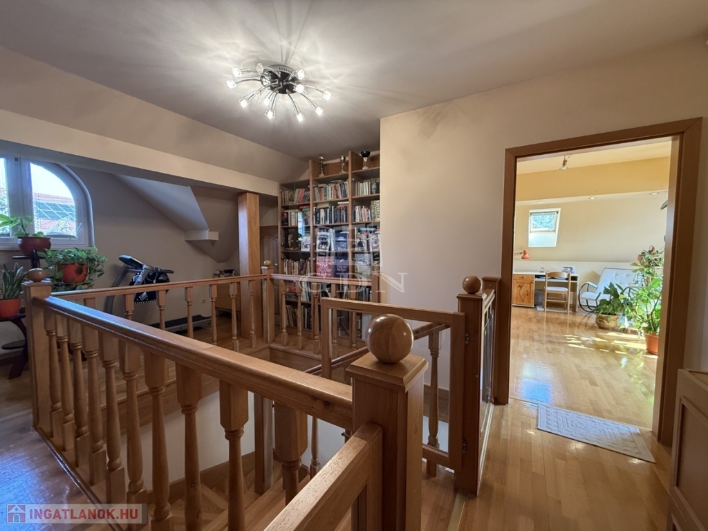Tetőtér : A központi lépcsőn keresztül közelíthető meg. Itt helyezkednek el a további hálószobák, 2 hálószoba saját fürdőszobával, és gardróbbal rendelkezik.. A galéria másik feléről közelíthető meg a jelenleg tároló/ vendégszobaként funkcionáló + még 2 szoba.