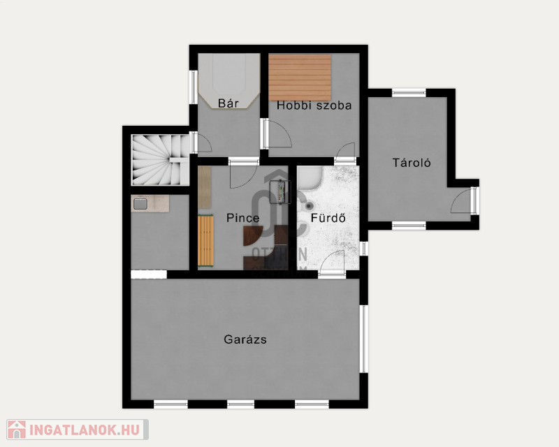 • Pinceszint: garázs, tároló, fürdőszoba, hobbi szoba, szauna, bár/borozó