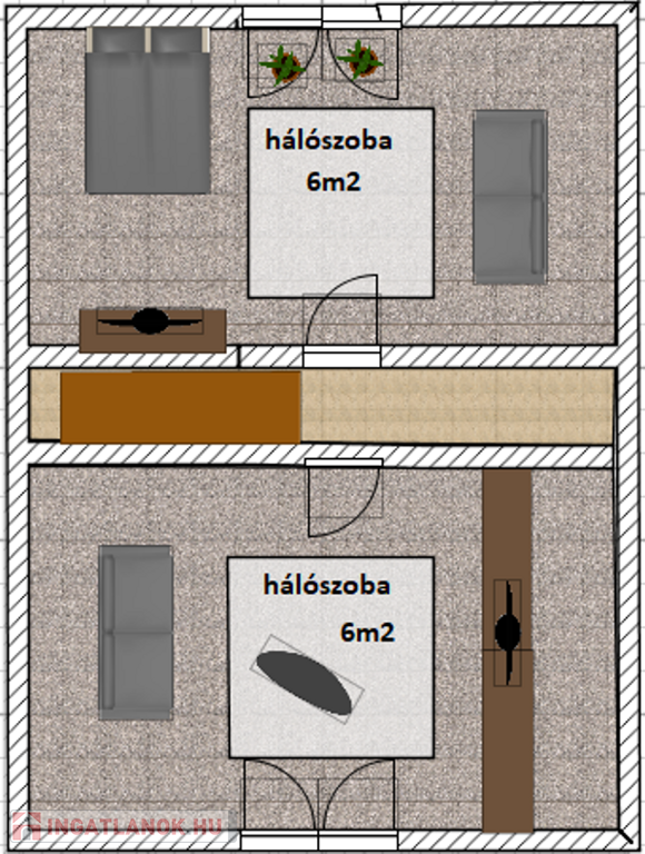 - két hálószoba az emeleten