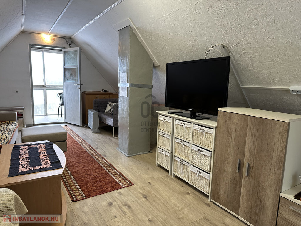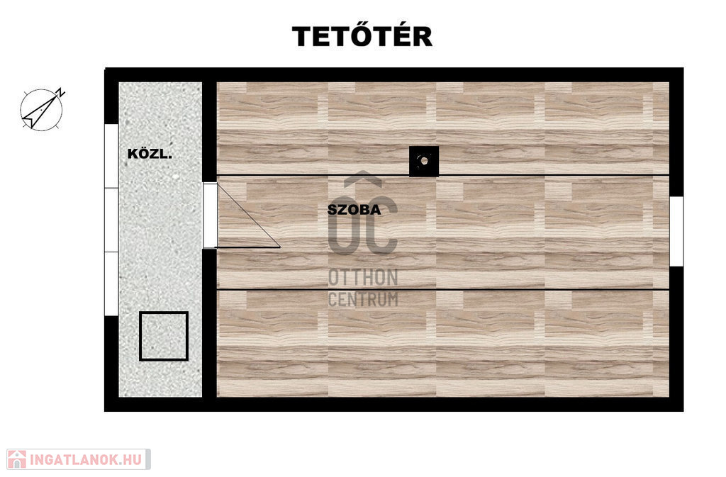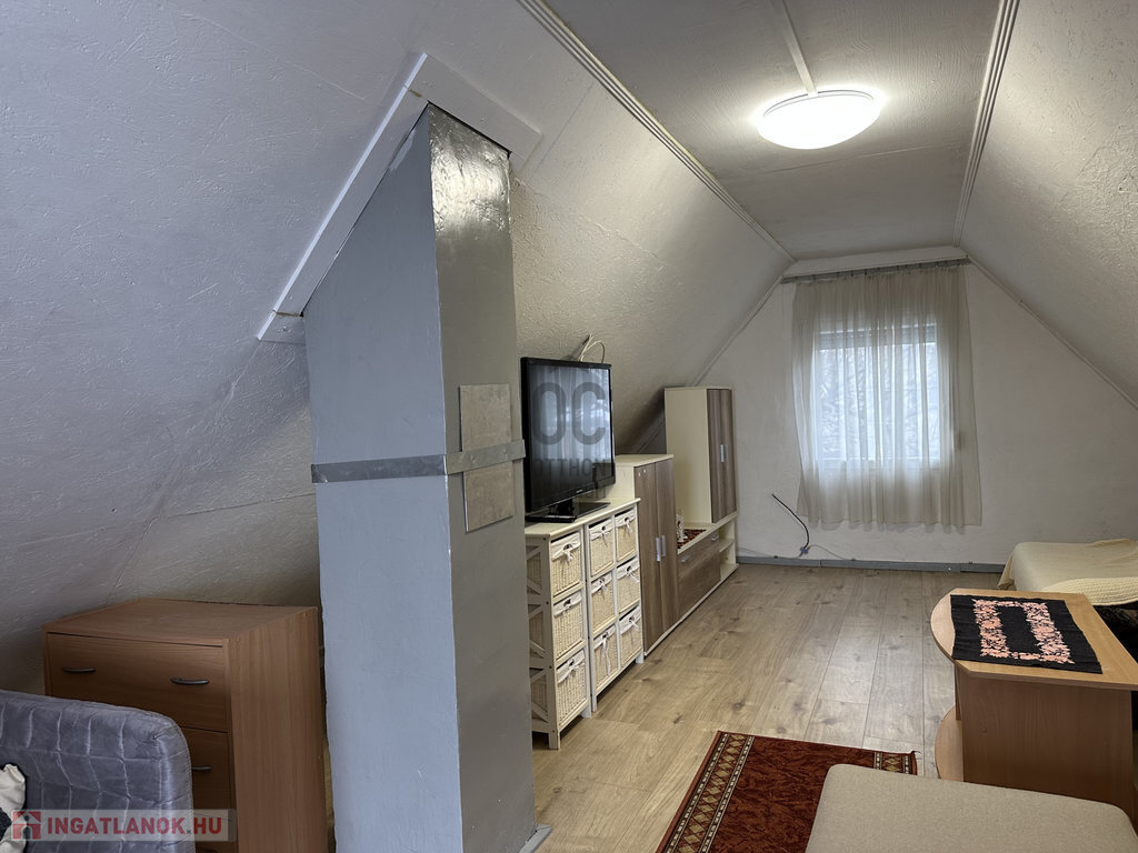 Tetőtér (12,4m2): az előszobából lenyitható lépcsőn lehet feljutni. Közlekedő és egy nagy szoba fogad bennünket.