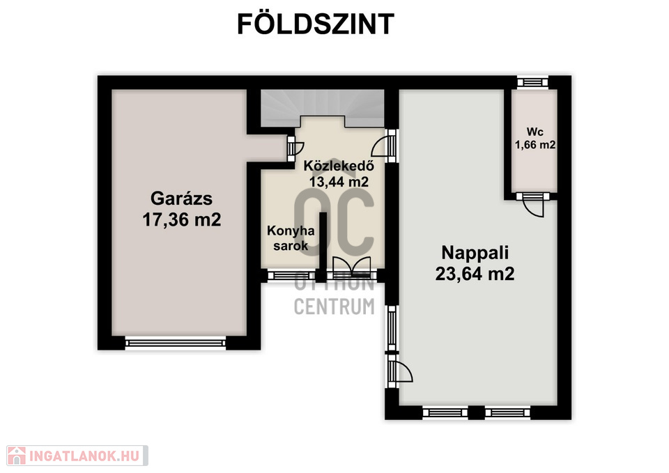 A épülethez közvetlenül kapcsolódik egy 17 négyzetméter alapterületű garázs.
