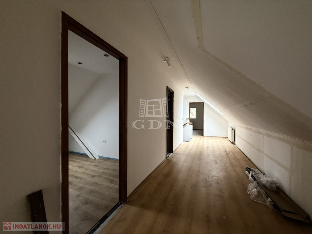 - földszint: kialakításra került előtér, tágas nappali- konyha étkező, 1 szoba, vendég wc, háztartási helyiség kamra,