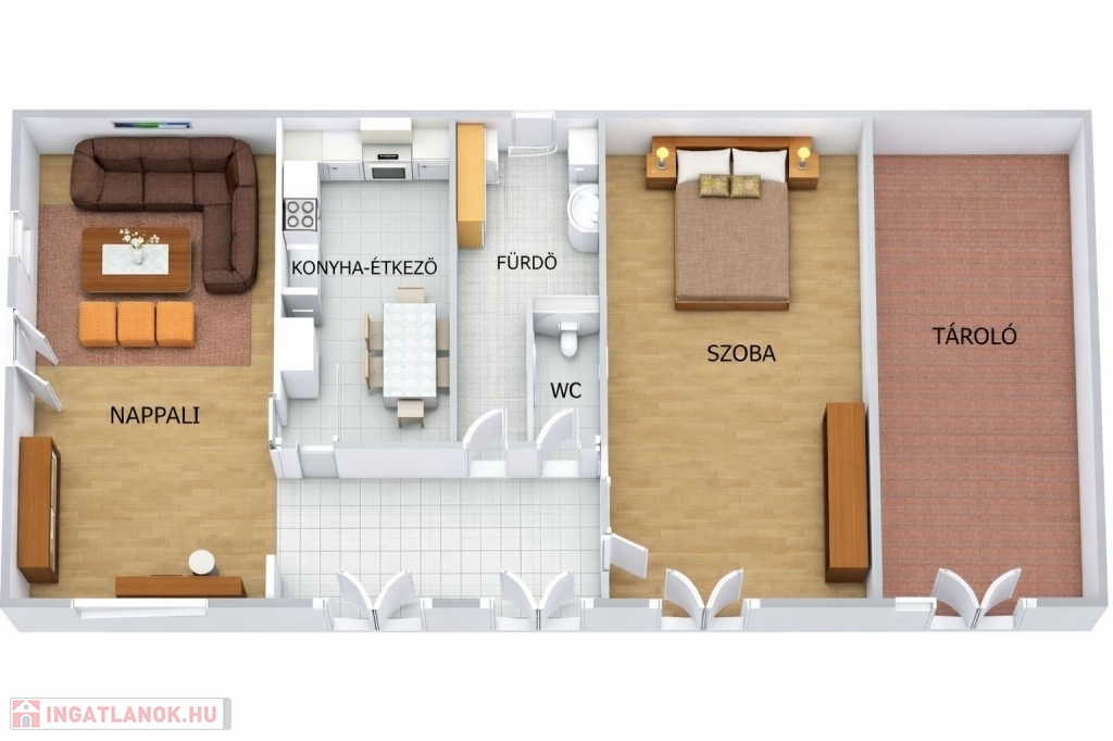 - 3 külön nyíló szoba