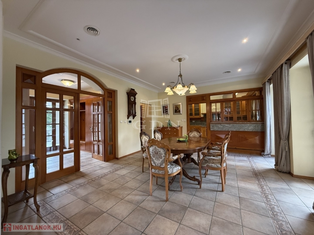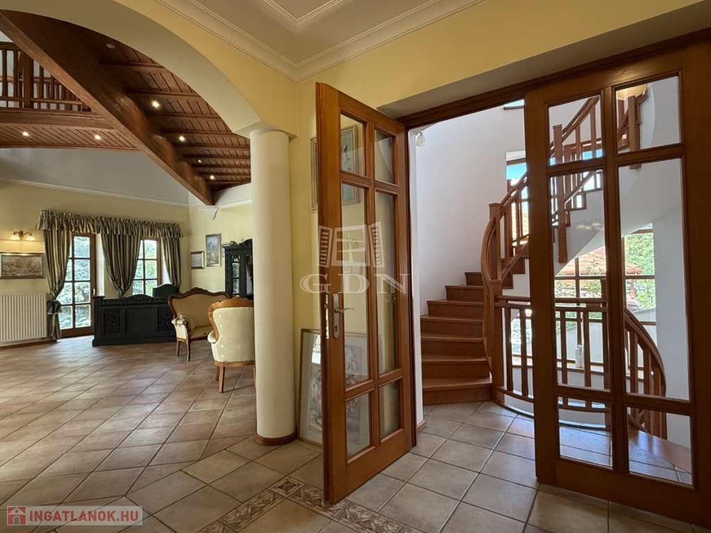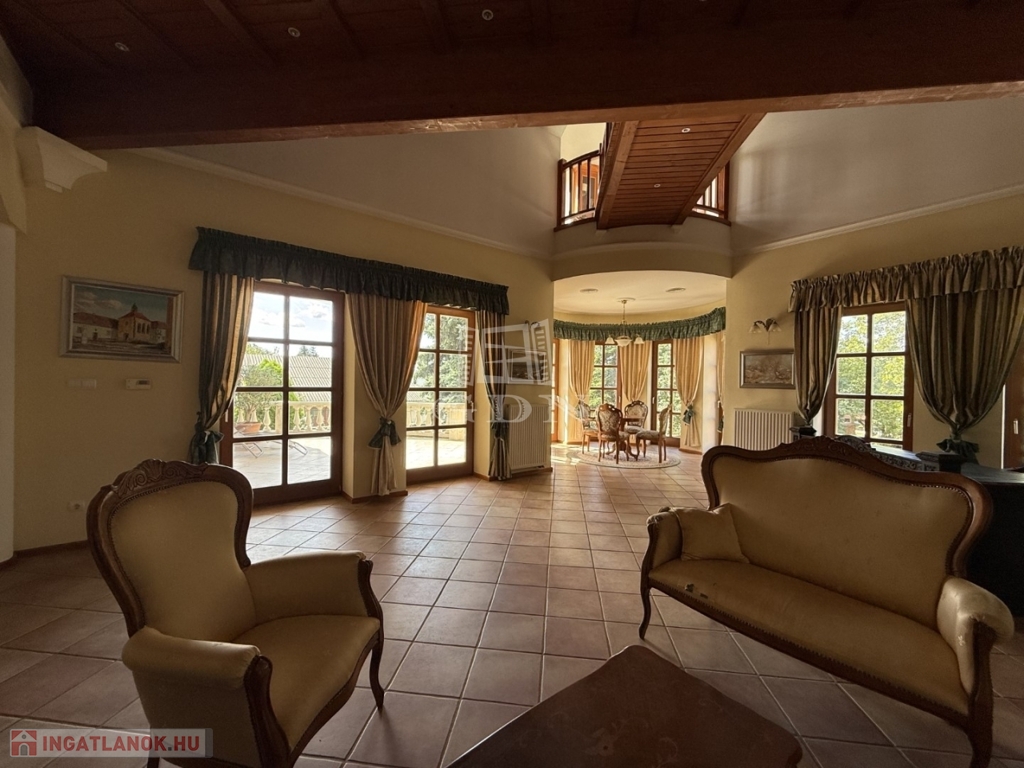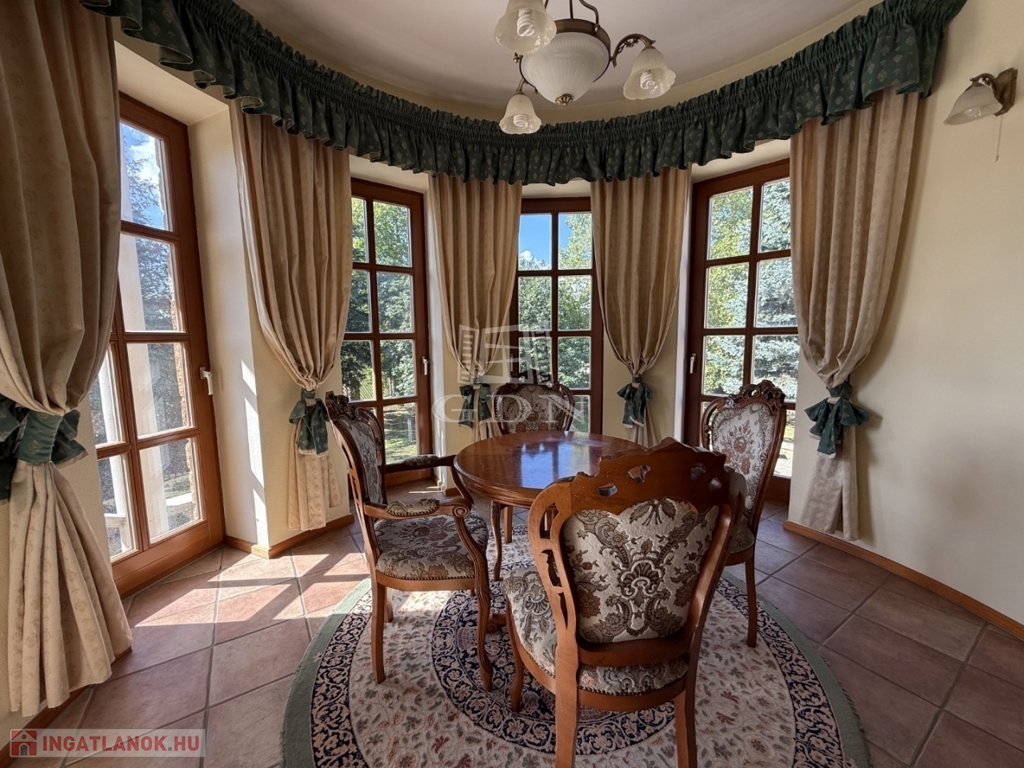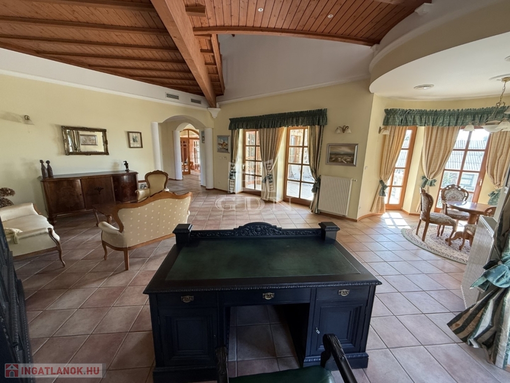 Az 2400 m2-es területen elhelyezkedő ingatlan 2002-ben épült, Porotherm 44 téglából, 8-12cm kőburkolattal, illetve hőszigeteléssel. Fűtése gázkazán, padló és radiátoros hőleadással. Nagy teljesítményű klímarendszerrel. Vastag falaknak köszönhetően a rezsiköltsége alacsony.