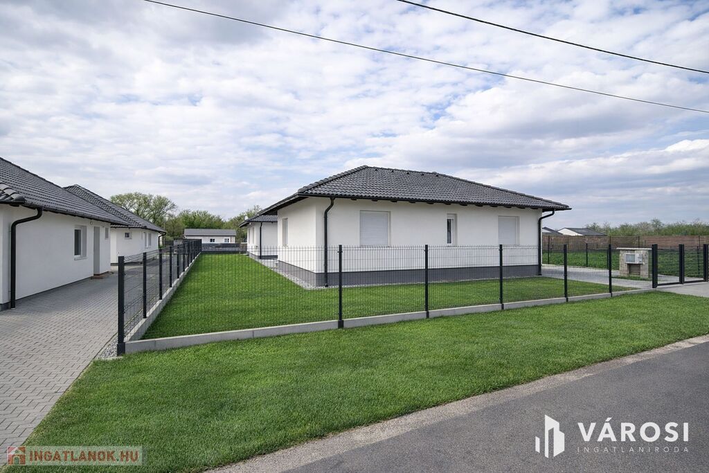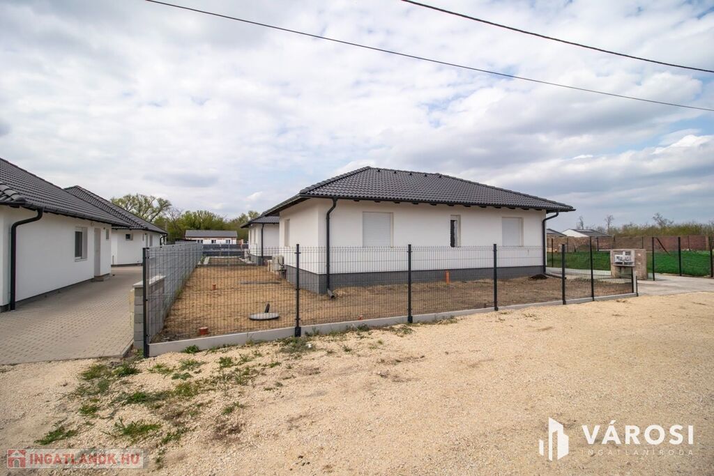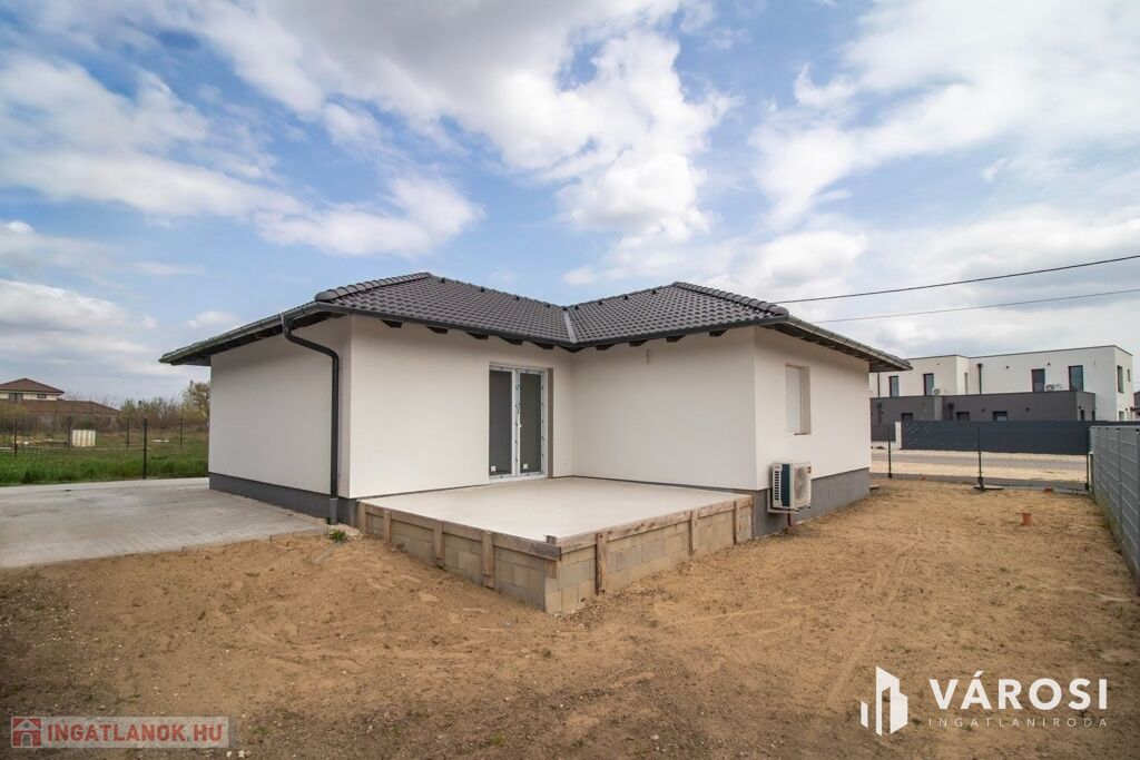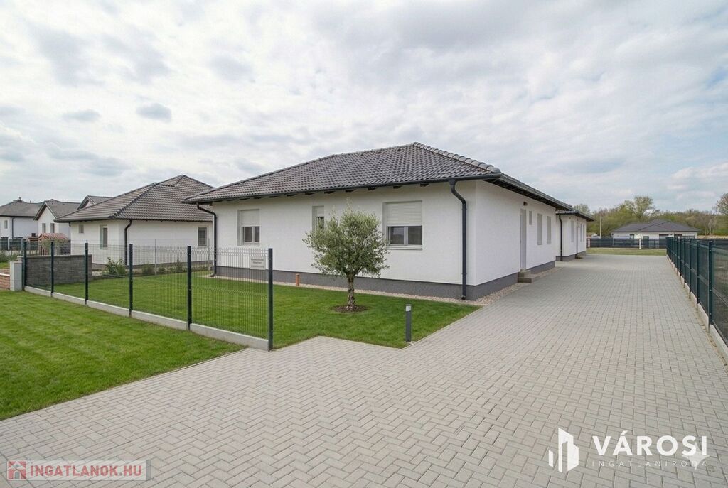 Nappali, konyha étkezővel 3 szoba, fürdőszoba, WC, háztartási helyiség és egy előszoba is található benne. Udvar felől nagy nyitott terasz is lehetőséget ad, a szabadban való pihenésre. A minimális energiaigényű kivitelezés, Porotherm falazat, 15 centiméteres külső szigetelés, 3 rétegű üvegezéssel ellátott nyílászárók és a legmodernebb hőszivattyús fűtés, A+++ -os energiahatékonysági besorolást és gazdaságos üzemeltetést biztosít.