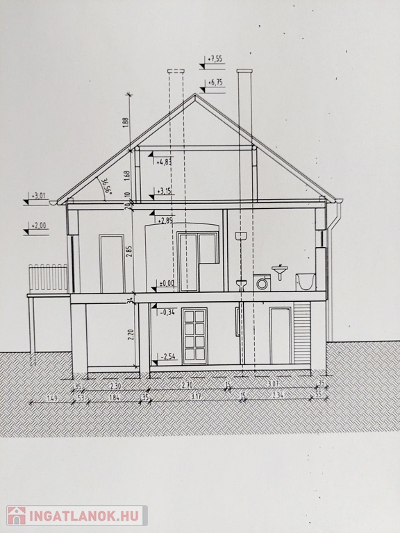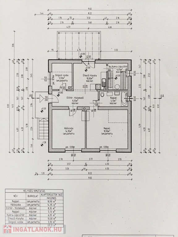 Lakószint: teraszkapcsolatos konyha, 2 szoba, 1 félszoba, fürdőszoba