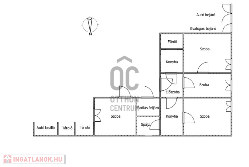 - Épület: 90 m², 4 szobás lakóház (felújítandó)