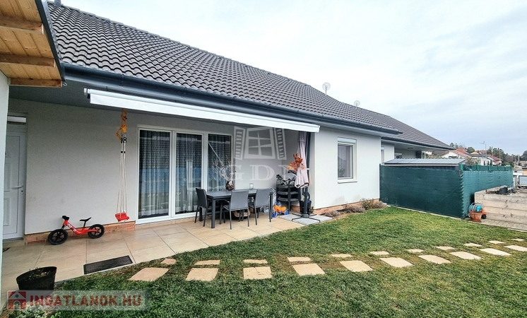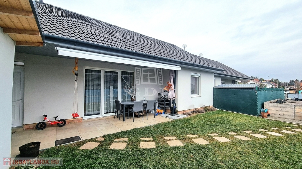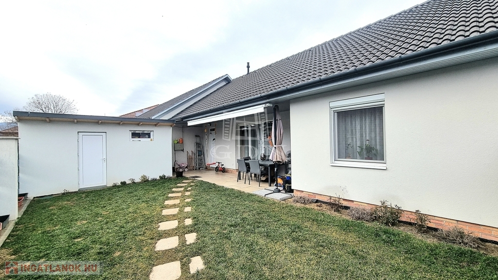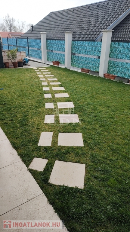 Az ingatlanhoz elszeparált, saját 216 nm-es telekrész tartozik, most épülő fedett kocsibeállóval, automata kapuval.