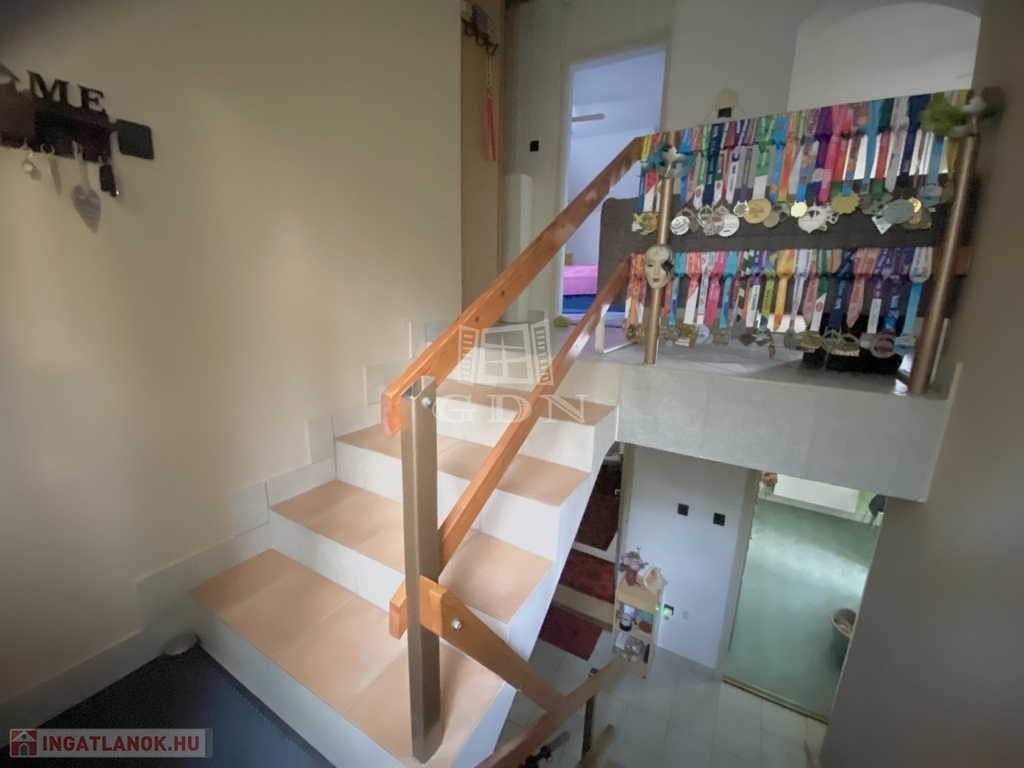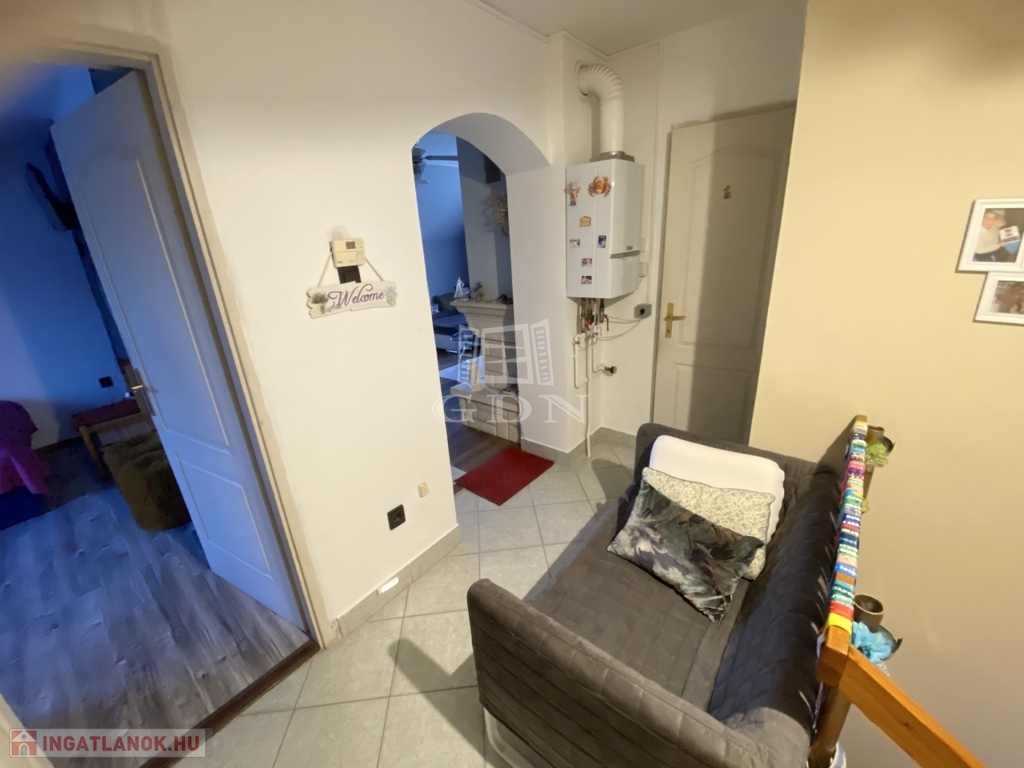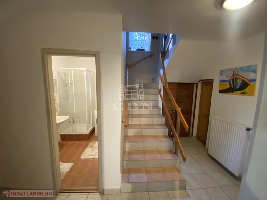 Szentendre tyúkosdűlői részén, hegyoldalban elhelyezkedő, 580 m² nagyságú, lépcsőzetes kialakítású telken, 2004-ben épült tégla szerkezetű, 80 m² hasznos alapterületű, duplakomfortos, három szobás, két generáció együttélésére is alkalmas, családi ház eladó!