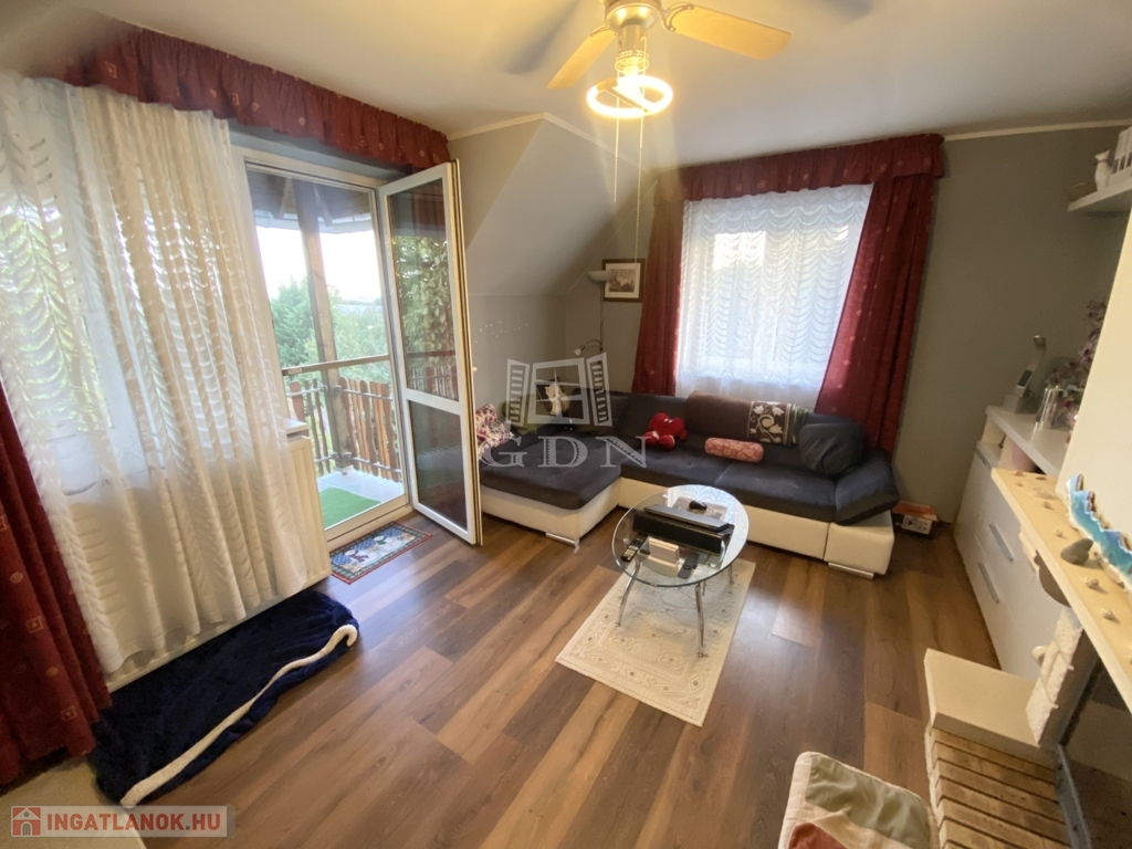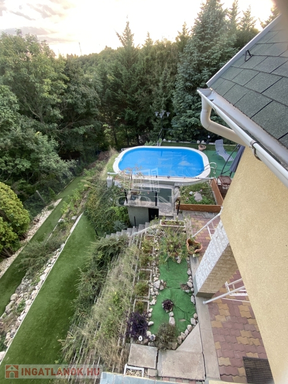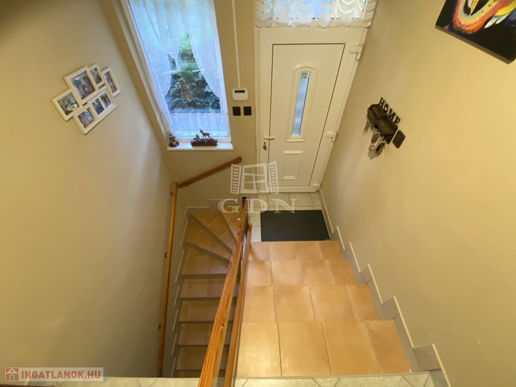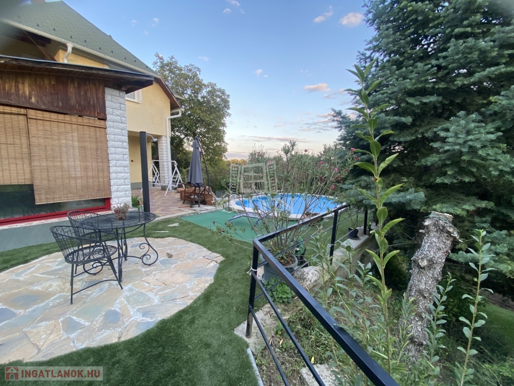 Az ingatlan két szintes, szigetelt. A földszinten található konyha, szoba, tárolók, 30 négyzetméter alapterületű (téliesített) terasz és egy 20 négyzetméteres vízforgatós, napelemmel fűthető, gépészettel ellátott medence, valamint egy 20 négyzetméteres garázs, elektromos kapuval.