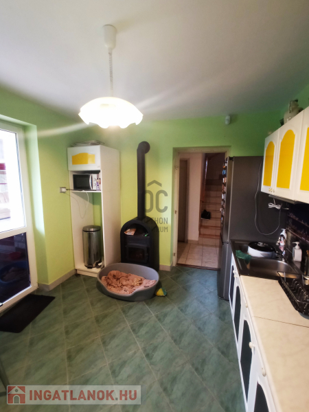 A ház utca fronti bejárata középen helyezkedik el, lefelé az alsó szinten egy hálószoba, fürdőszoba, étkező-konyha kapott helyet, ahonnan ki tudunk lépni a közvetlenül a teraszra/kertbe, továbbá egy tároló is található. A bejárattól felfelé az emeleti szinten további 1 háló szoba, fürdőszoba és egy 16 nm nagyságú nappali helyezkedik el, csodálatos panorámát nyújtó erkéllyel. Téli időszakban meleg hangulatot árasztó kandallóval.