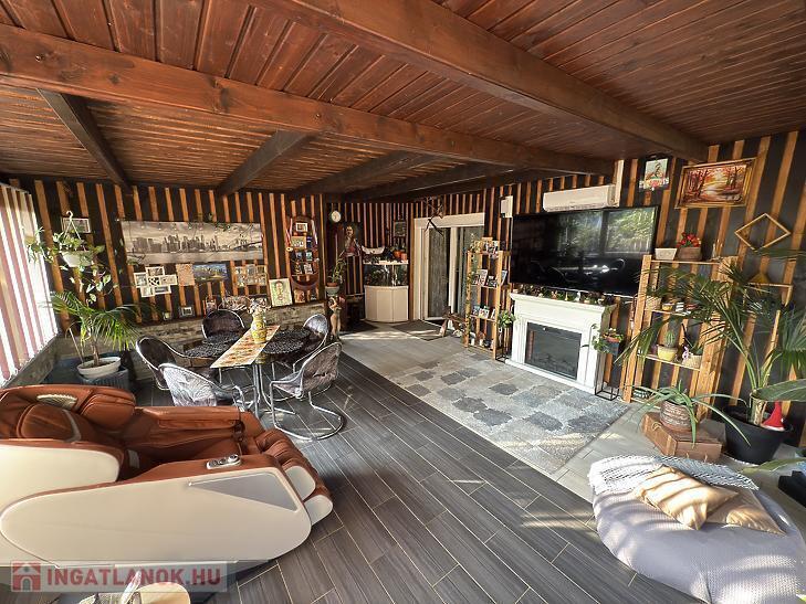 -Plusz a telken belül egy 14 nm-es vendégház, amiben van egy szoba és szauna.