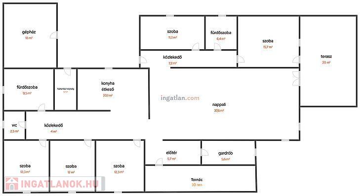 - Plusz egy 20 nm-es terasz, egy 10 nm-es veranda, és egy 18 nm-es kazánház.