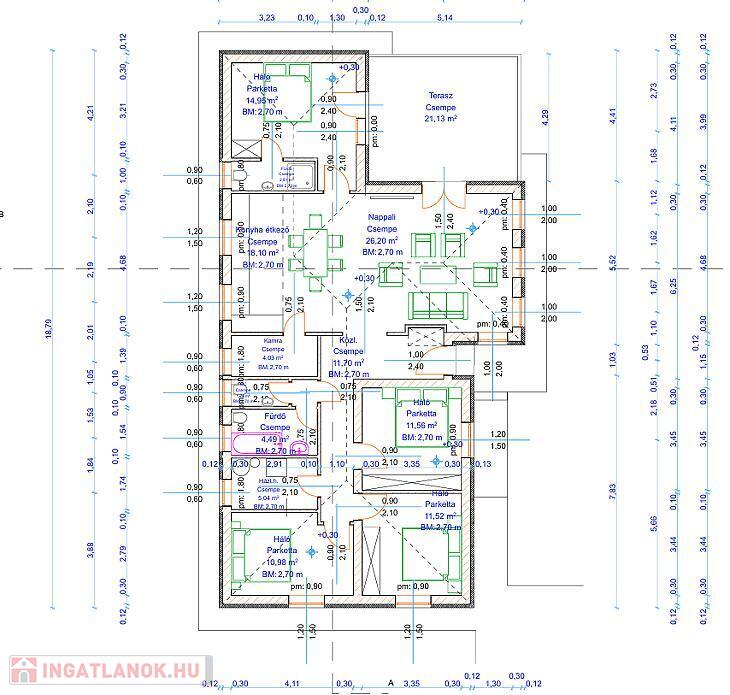 -Az ingatlan 30 cm-es POROTHERM téglából épül, és 12 cm-es EPS szigetelést kap.